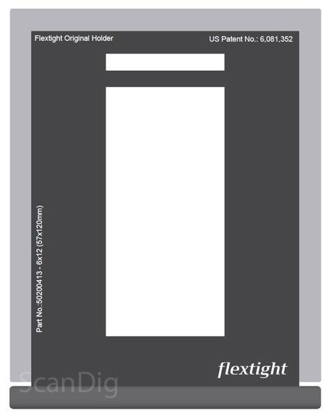 Dieser Hasselblad-Filmhalter dient zum Einscannen von Einzelbildern im Mittelformat 6x12 (negativ/positiv).
